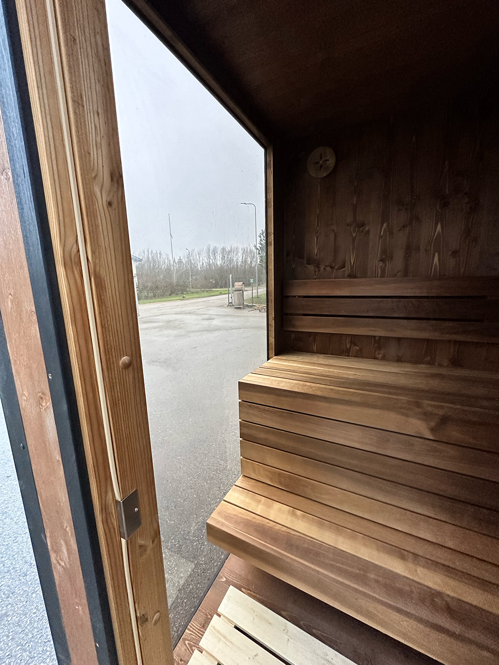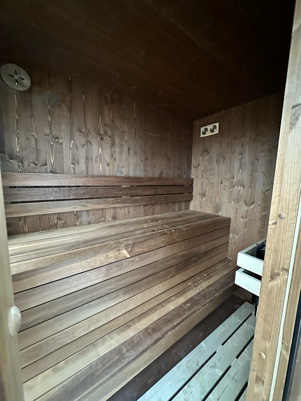 • Sauna: benches made of thermal alder, wood-burning Harvia 20 pro stove with chimney